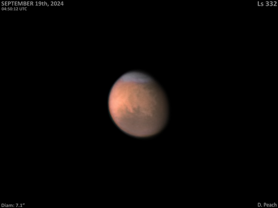 August 19th, 2024 - Note the extensive dust clouds across Chryse at the left side of the disk.