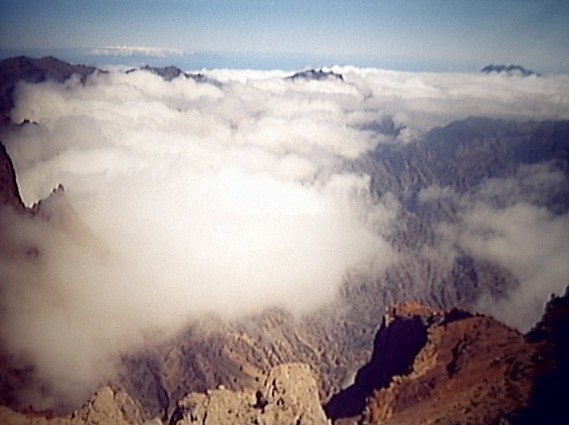 The Caldera de Taburiente, On the other side of the ridge where the observatory is situated lies the spectacular drop toward to Caldera de Taburiente. One could almost step of the edge, onto the tops of the clouds!.