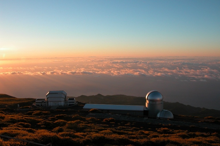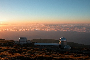 The Roque de los Muchachos Observatory. The Fuente Nueva peak on La Palma. The site (at 2360m) lies high above the clouds, and the convex shape of the mountain is a major factor in the superb seeing conditions that prevail for much of the year there.