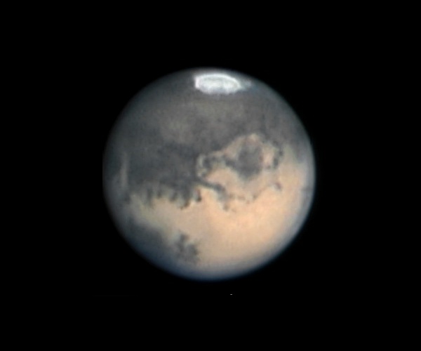 I travelled to the island with a BBC Television crew, where we filmed an ambitious live program, which was broadcast live in the UK called "The All Night Star Party". I provided live, and later high resolution processed images of Mars for the program, and also explained the features we saw, and how to obtain images. I was also fortunate to have an excellent site on the roof of the 2.5 metre Issac Newton Telescope from where i spent three nights imaging the Planet under good seeing.
