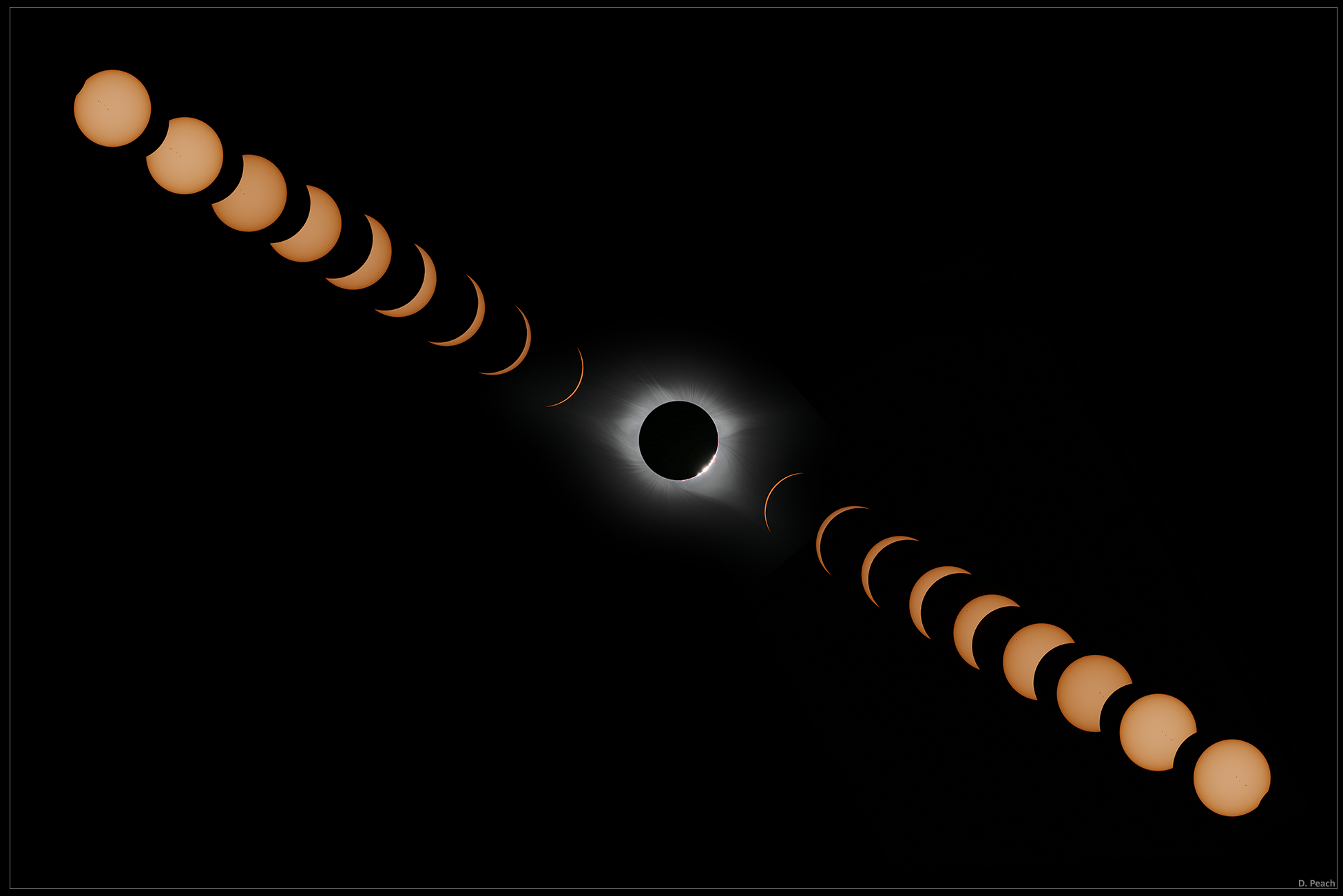 Montage of totality from second to third contact, including diamond rings and Baily's beads.