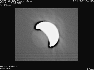 Venus, March 6th, 2009. Showing the thermal nightside glow visible at the 1micron wavelength. C14 & SKYnyx 2.0M.