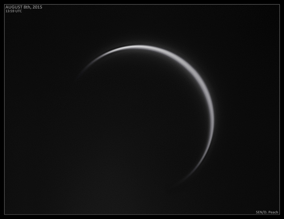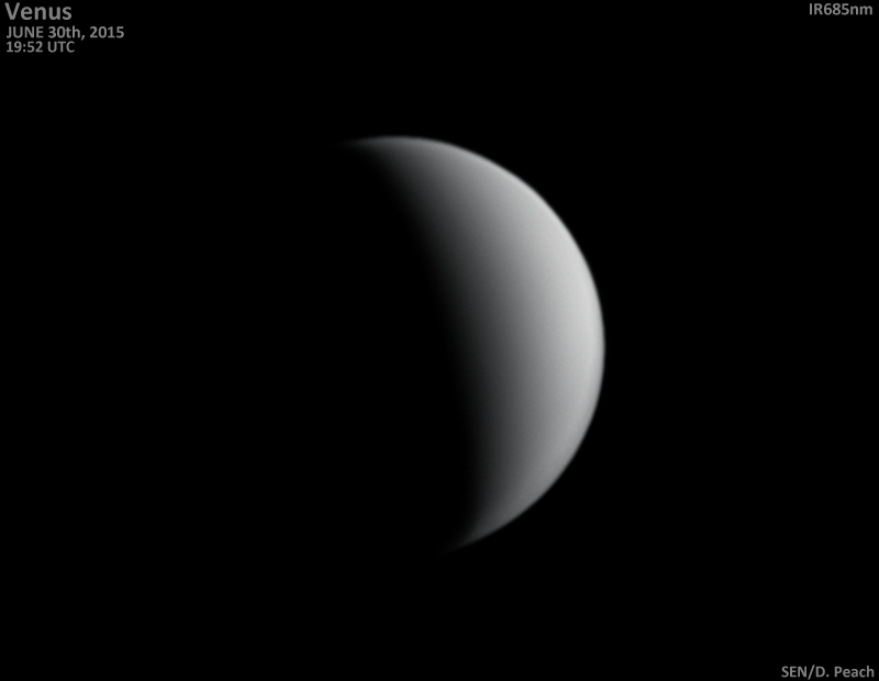 Venus, August 8th, 2015. Showing the planet nearing inferior conjunction presenting a large narrow crescent.